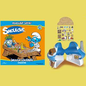 Každé 2 týdny KNÍŽEČKA V PEVNÉ VAZBĚ s barevnými FIGURKAMI, se kterými vytvoříte svou ŠMOULÍ VESNICI!